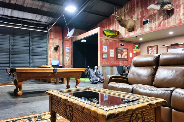 Rain or shine, you can still work on your swing. Our indoor golf simulator lets you play famous courses, practice drives, and challenge friends without leaving the ranch. Grab a club and have some fun!